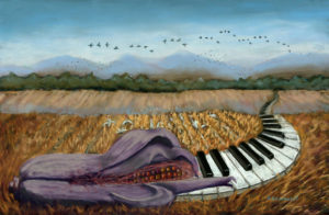 The Italian violinist and composer, Antonio Vivaldi, desired to musically describe landscapes, scenes and human emotional behaviors by technical and interpretive instrumental playing without the use of words. His concertos, the Four Seasons, are an example of the narrative elements through listening. Artists use brushwork, color, value and other art elements to interpret scenes and touch human emotions and responses visually. Everything in Joyful Rhythm is a series of work that explores the visual and musical nature of art through painting. The Autumn Cornfield, is an oil painting which parallels its own musical rhythm. The life cycle of a seed, having persisted through Spring and survived Summer, is now nearing Autumn harvest. Portrayed at sunset, the field is close to its soulful Winter rest. The Four Seasons are near completion.