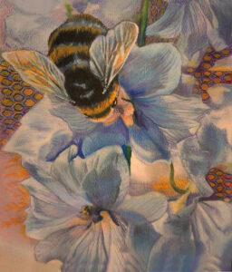 “My honor to Pollinators, these giants in our lives. Floating and swerving and coasting through the plants and on to the blossoms. The ones in small bodies with fragile wings, tirelessly spreading the pollen, creating the fruits and grains and honey that we rely on to survive. To these colorful little beings, sharing your beaty as you do your daily chores…. Thank you!”
