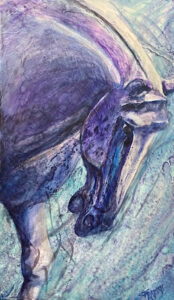 As soon as I found this line when rereading The Art Spirit, I leapt at it as a chance to portray my chosen form--equines! Much of the rest of the book, however, emphasizes simplifying shapes and gestures to allow the essence of the subject to come through. Not always my forte! But, a recent museum visit reignited a long-standing passion for the Chinese Tang Dynasty ceramic horse sculptures. I adore their stylized simplification of forms, not to mention their incredible craftsmanship! Using references from this visit, I’ve been doing a series I call Ancient Shapes. I wanted the fierce determination & fiery spirit of a polo pony from a thousand plus years ago to shine through in MY media & style.