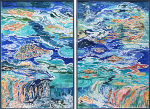 Water—we can’t live without it; sometimes we feel we can’t live with what it offers us. Water is a force of nature to be reckoned with. A blessing and a curse. It can be calm, comforting, healing, or powerful and destructive like the raging floodwaters that cut its path. On a pleasant day, it feels like a refreshing drink, quenching thirst and soothing the soul, somewhat like a beautiful painting!